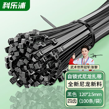 科乐浦(KELEPU)自锁式尼龙扎带小号3*120mm*2.5mm 电脑装机 园艺 桌面理线带束线捆扎绑带 黑色 100条装