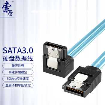 索厉 SATA3.0高速双通道SATA线弯对直固态硬盘 SSD SATA线蓝色 0.5米 SLG46