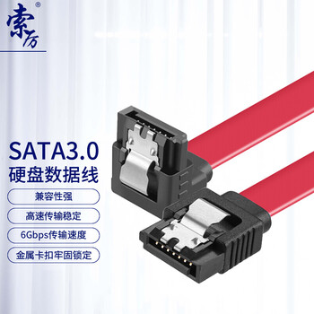 索厉 SATA3.0高速双通道SATA线弯对直固态硬盘 SSD SATA线红色 0.5米 SLG45